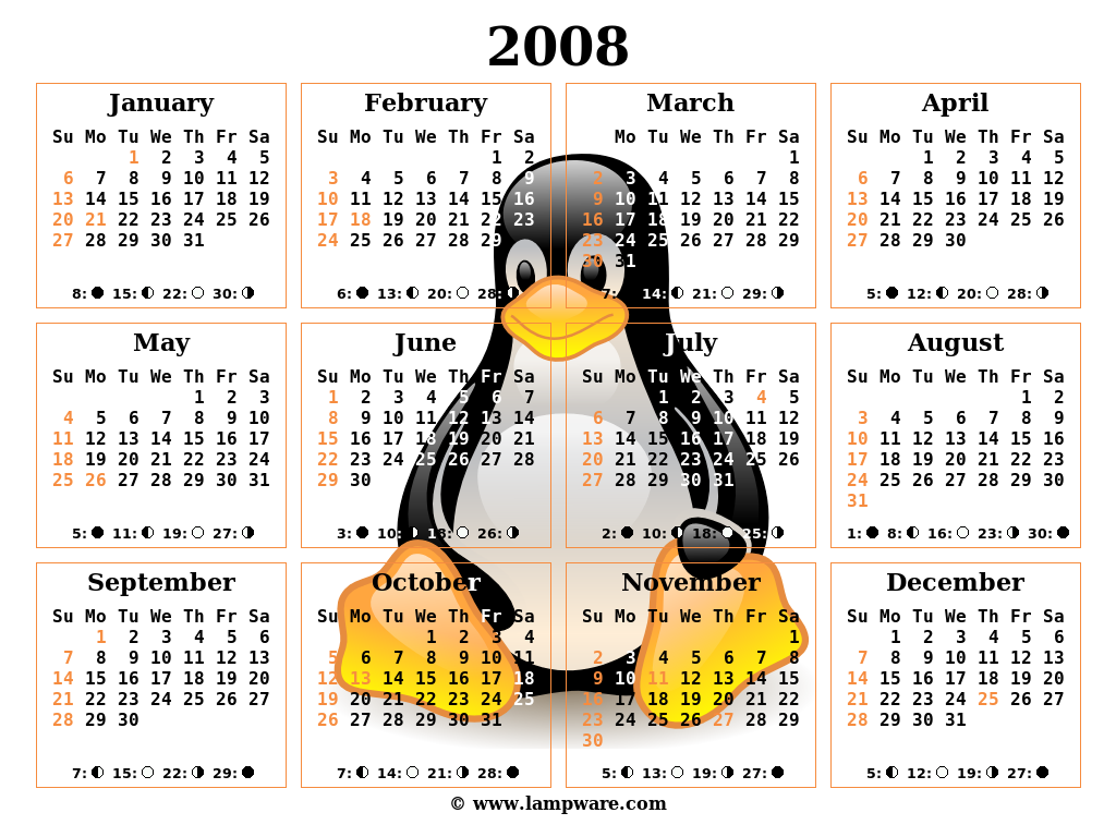 - Suggestions for new calendars are always welcome, but I can not promise they will be used.